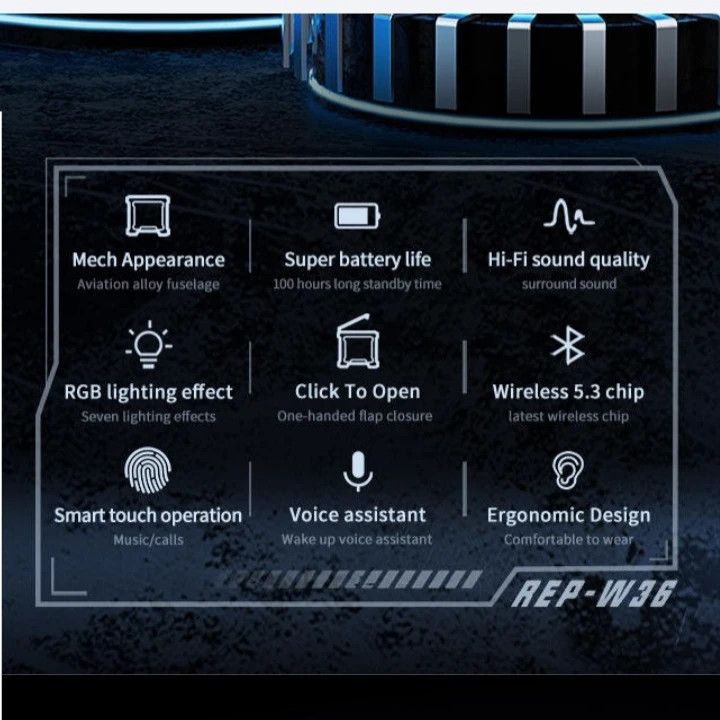اگر به دنبال یک هدفون بیسیم برای تجربهی بازیهای ویدیویی با بهترین کیفیت صدا هستید، هدفون بلوتوثی مخصوص بازی رسی مدل REP-W36 دقیقا همان چیزی است که در پی آن بودید. این هدفون با طراحی جذاب و زیبا به همراه نورپردازی RGB، هر بازیکنی را به وجد میآورد. هدفون مذکور به صورت دو گوشی طراحی شده و با وزن فقط دو گرم، در گوش کاربر احساس سنگینی ایجاد نمیکند. اما هنگام تجربهی یک بازی ویدیویی، هیچ چیز بیشتر از صدای پرجزئیات نمیتواند بازیکن را در دنیای بازی غرق کند. به همین منظور این هدفون با استفاده از صدای HiFi فراگیر، بهترین صدای ممکن را با تمام جزئیات، به گوش بازیکن انتقال میدهد. هدفون بلوتوثی مخصوص بازی رسی مدل REP-W36 برای اتصال به تلفن همراه، کامپیوتر یا لپ تاپ، از بلوتوث نسخه 5.3 استفاده میکند. به همین ترتیب صدای بازی با کمترین تاخیر ممکن، به گوش کاربر میرسد. از طرفی این محصول تا فاصلهی 10 متری از دستگاه جفت شده، مورد استفاده قرار میگیرد. هدفون مذکور برای تامین نیروی مورد نیاز خود، از یک محفظه شارژ استفاده میکند. این هدفون در حالت مکالمه تا چهار ساعت، هنگام پخش موسیقی تا شش ساعت و در حالت استندبای تا 100 ساعت شارژ را در خودش نگه میدارد. از طرفی برای شارژ باتری آن به صورت کامل، تنها به 30 دقیقه زمان نیاز دارید. از دیگر ویژگیهای این محصول میتوان به قابلیت نویز کنسلینگ و مقاومت در برابر رطوبت و عرق اشاره کرد.