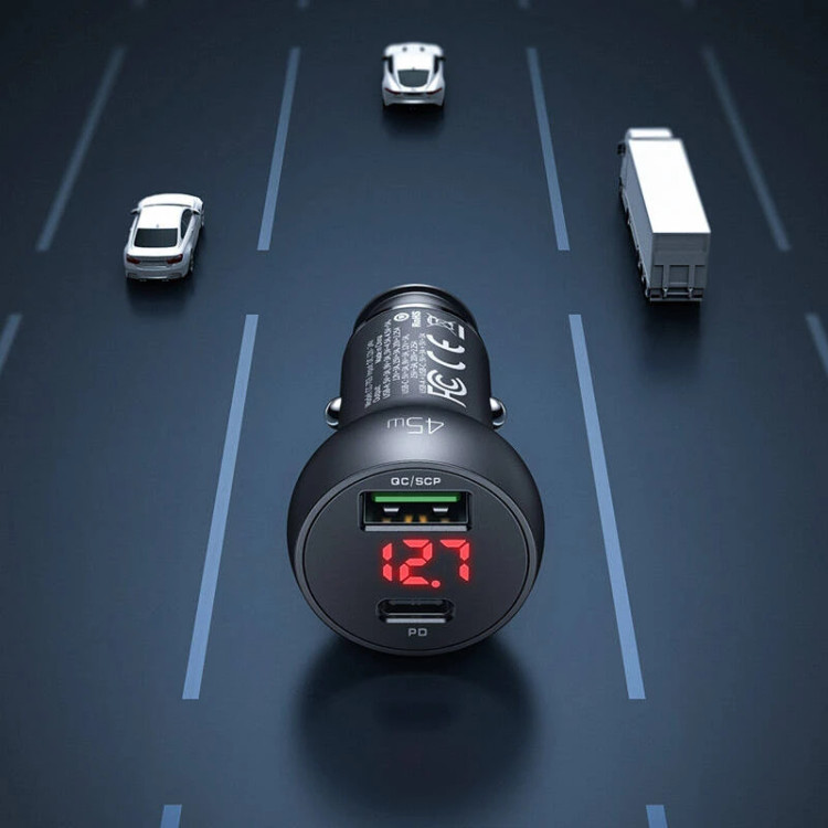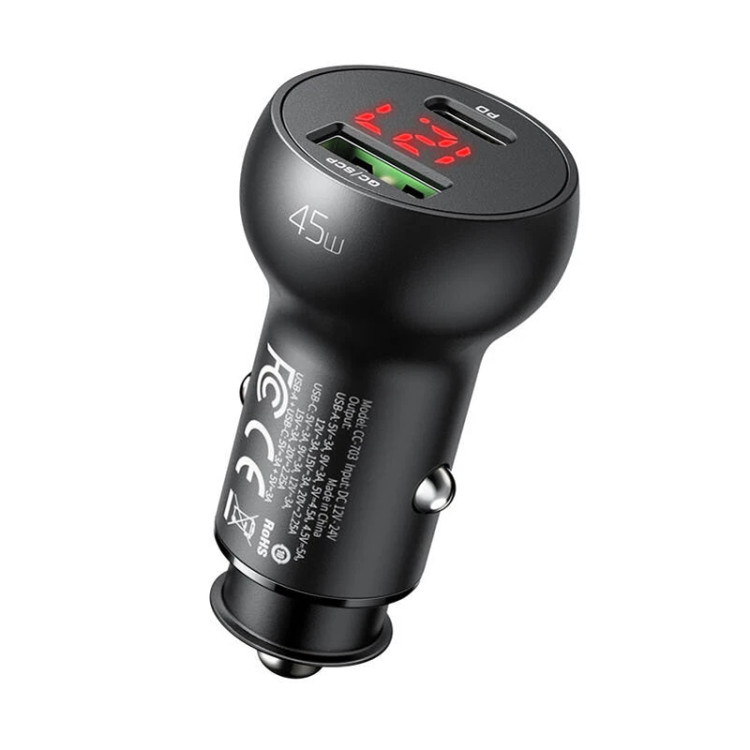 برخورداری از بدنه مقاوم از جنس آلیاژ آلومینیوم در ابعادی کوچک، محافظت در برابر حرارت، نوسانات ولتاژ و جریان و … بهره مندی از یک عدد پورت یو اس بی و یک درگاه تایپ سی با امکان شارژ همزمان دو دستگاه هوشمند شدت جریان عبوری پورت USB برابر با ۵V⎓۳A/۹V⎓۳A/۱۲V⎓۳A/۱۵V⎓۳A/۲۰V⎓۲٫۲۵A/۵V⎓۴٫۵A/۴.۵V⎓۵A پشتیبانی از فناوری شارژ سریع QC۴.۰ و تکنولوژی شارژ هوشمند Power Delivery با توان خروجی کلی ۴۵ وات دارای نمایشگر LED، شدت جریان خروجی از درگاه Type-C معادل با ۵V⎓۳A/۹V⎓۳A/۱۲V⎓۳A/۱۵V⎓۳A/۲۰V⎓۲٫۲۵A دارای استانداردهای سلامت و ایمنی محصول شامل CE،FCC و RoHS، اتصال در انواع خودرو با ولتاژ ورودی ۱۲ الی ۲۴ ولت