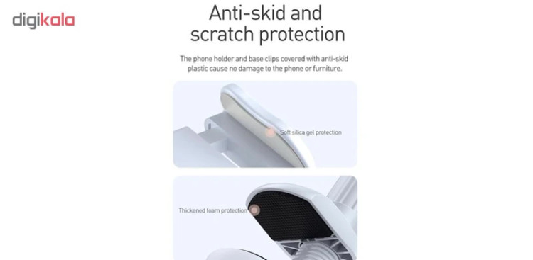 شرکت بیسوس این محصول را در دو رنگ خاکستری با کد SULR-0G و نقره ای با کد SULR-0S تولید کرده است.استفاده بیش از حد از گوشی همراه علاوه بر آسیب رساندن به چشم ، به بخش های دیگری همچون گردن ، دست و کمر هم آسیب می زند. کمپانی بیسوس با ساخت هولدری این مشکل را به کلی از بین برده است. واژه هولدر شاید در ذهن شما فقط نگهدارنده های داخل اتومبیل باشد اما ما قصد داریم محصولی رو میزی به شما معرفی بکنیم. هولدر Unlimited adjustment lazy محصولی از کمپانی Baseus بوده که توسط گیره قرار گرفته در قسمت انتهایی آن بر روی لبه میز متصل می شود و قادر است گوشی هایی با ابعاد 4.0 تا 6.5 اینچ را به راحتی نگه دارد.