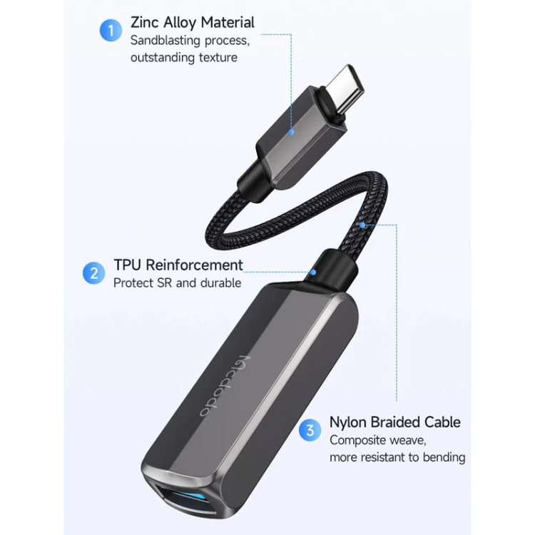 تبدیل مک دودو CA-2830 دارای روکشی از جنس آلیاژ زینک بوده که مقاومت آن را در برابر فشار و ضربه را بالا برده و به همین سبب طول عمر آن هم بیشتر خواهد شد. درگاه USB تبدیل تایپ سی به USB مک دودو CA-2830 از نوع USB 3.0 بوده و می تواند با سرعت 5 گیگابیت بر ثانیه داده ها را انتقال دهد.