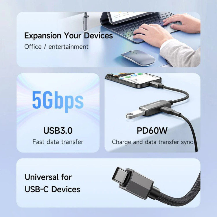 -دارای قابلیت انتقال اطلاعات از فلش و بالعکس -پشتیبانی از قابلیت PD3.0 -کابل با روکش کنفی -حداکثر توان تا 60 وات و جریان تا 3 آمپر