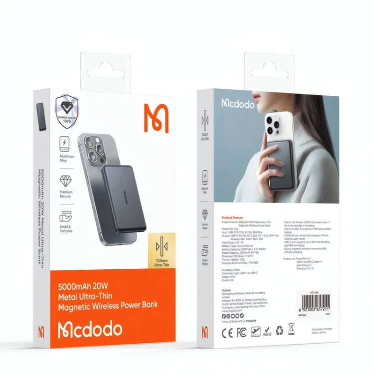 کالای اورجینال مک دودو، | شارژ سریع PD ۲۰ وات | چراغ نشانگر LED میزان شارژ | خاصیت مگنتی برای اتصال گوشی | بدنه بسیار نازک و مقاوم | دارای قابلیت های محافظتی جلوگیری از شارژ بیش از حد و حفاظت در برابر اتصال کوتاه