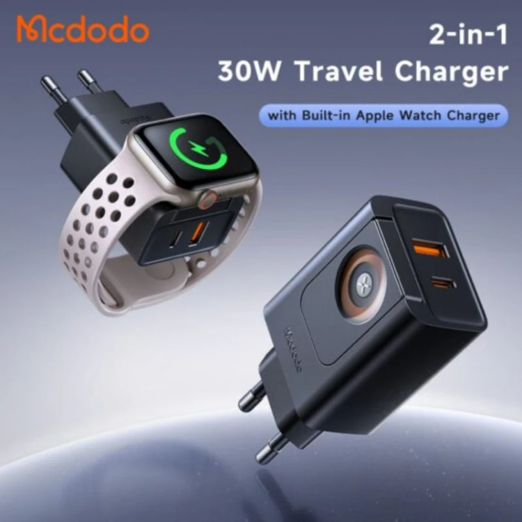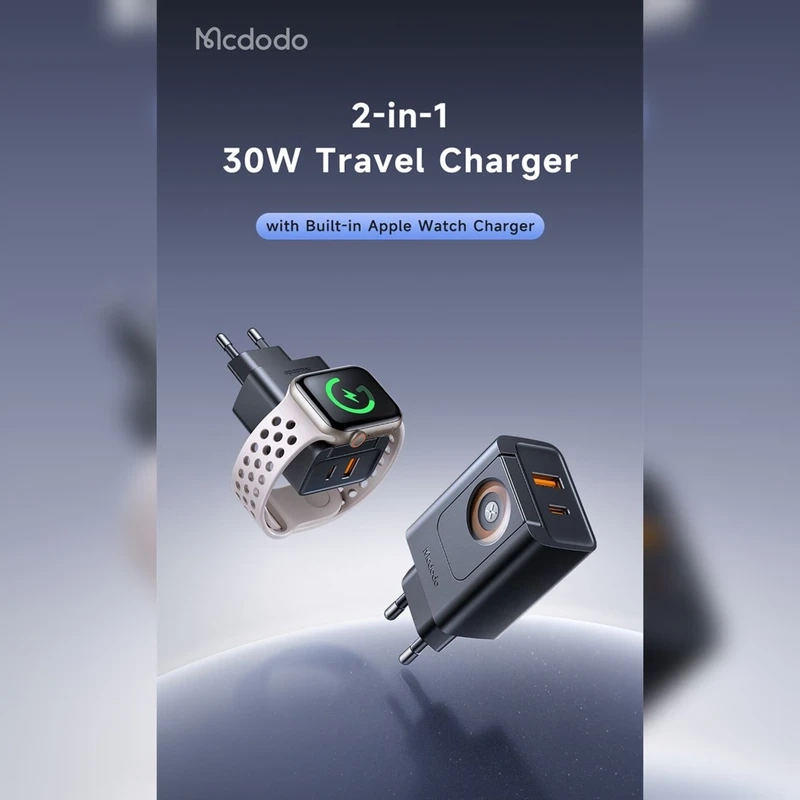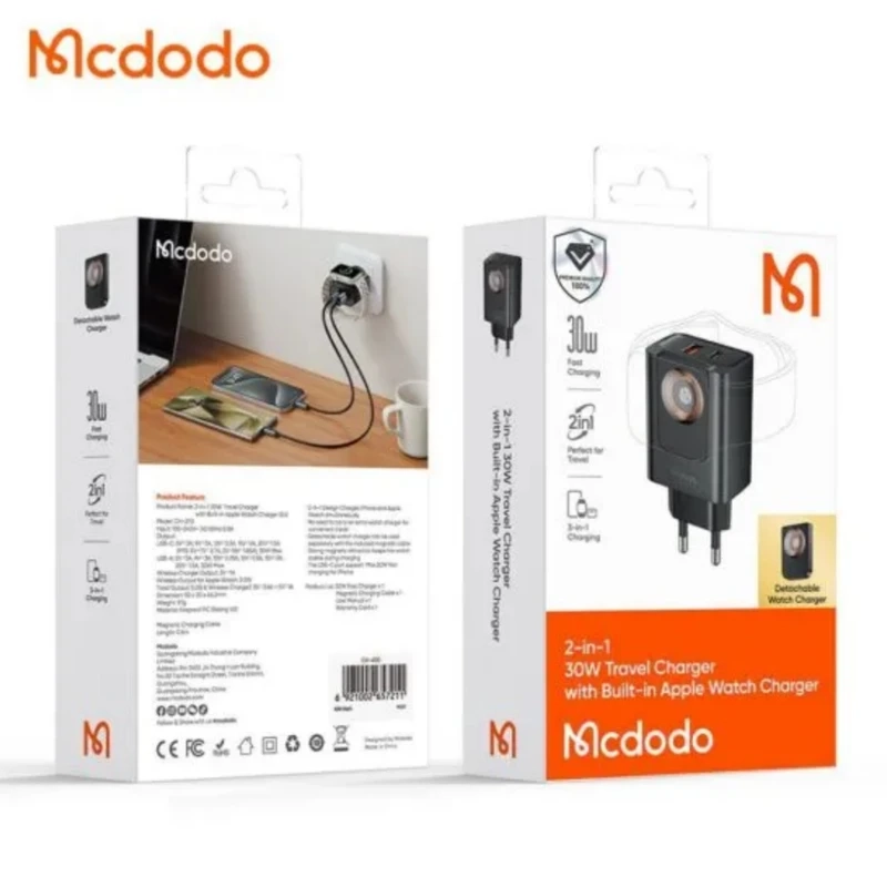 خرید شارژر دیواری 2 پورت 30 وات با شارژر وایرلس اپل واچ برند Mcdodo مدل CH-3700
