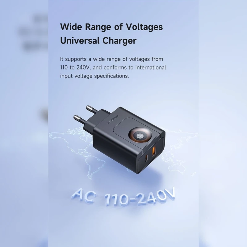 بدنه شارژر دیواری 30 وات مکدودو از پلی کربنات ضد حریق ( Fireproof PC ) مقاوم در برابر گرما و آتش ساخته شده است. همچنین این آداپتور Mcdodo بسیار سیک و کم حجم بوده و حجم زیای را اشغال نخواهد کرد که طراحی مینی و فوق سبک با بهره مندی از پیشرفته ترین تکنولوژی نیمه هادی گالیم نیترید GaN دارد. به لطف فناوری GaN در این شارژر ابعاد و حجم بسیار کوچکتر از دیگر شارژر های همرده می باشد با توان و راندمان بسیار بالاتر و عدم بالارفتن حرارت و داغ کردن می شود. دو شاخه موجود در با استفاندارد جهانی EU تولیده شده است که با انواع پریز های داخل ایران سازگار بوده و ورودی برق این شارژر فست 100- 240 ولت ~ 50/60 هرتز 0.8a سازگار با برق ایران می باشد.