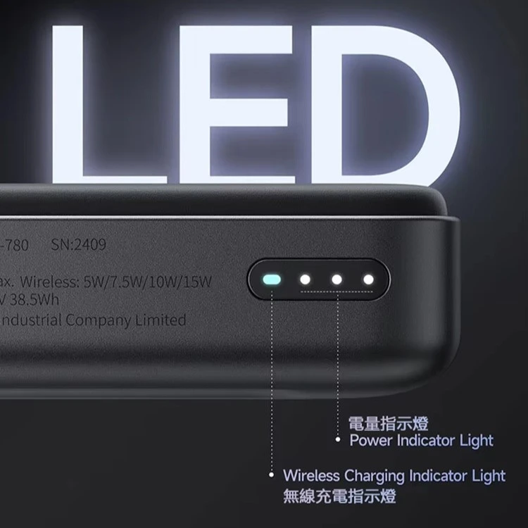 مشخصات فنی: درگاه ورودی تایپ سی: ۵V~۳A / ۹V~۲A / ۱۲V~۱.۵A::::۱۸w خروجی تایپ سی: ۳۰w درگاه خروجی وایرلس شارژ: ۱۵W / ۱۰W / ۷.۵W / ۵W (wireless)