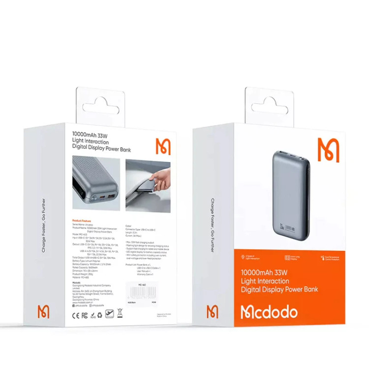 پاوربانک مک دودو مدل Light Interaction Digital Display Power Bank MC-453 با ترکیب ظرفیت بالا، توان خروجی قوی، طراحی زیبا و امکانات ایمنی پیشرفته، یک انتخاب عالی برای هر فردی است که به دنبال یک پاوربانک قابل اعتماد و کارآمد میگردد. این محصول با قابلیت شارژ همزمان دو دستگاه و تاییدیه حمل در هواپیما، میتواند به عنوان یک همراه همیشگی در تأمین انرژی دستگاههای الکترونیکی شما نقش مهمی ایفا کند.