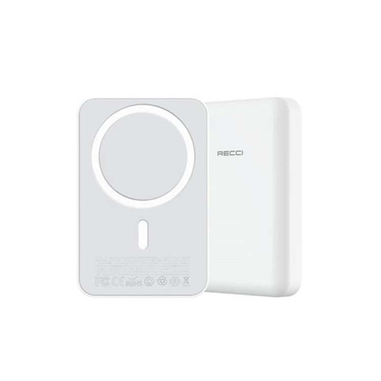 پاوربانک و شارژر مغناطیسی Recci Mini Portable Ultra-Slim Wireless Magnet Power Bank RPB-W11 با قطر بسیار باریک معادل 14.5 میلیمتر و ظرفیت باتری 10000 میلی آمپر ساعتی یک نمونه کاملاً درخشان است.