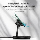 پایه این شارژر به گونهای طراحی شده است که می توانید زاویه شیب آن را تا 20 درجه تغییر دهید. این قابلیت به شما اجازه می دهد تا دستگاه های خود را در بهترین زاویه ممکن قرار دهید، چه در حالت عمودی و چه در حالت افقی. این ویژگی به خصوص برای تماشای ویدئو، خواندن مطالب، یا استفاده از گوشی در حین شارژ بسیار کاربردی است.