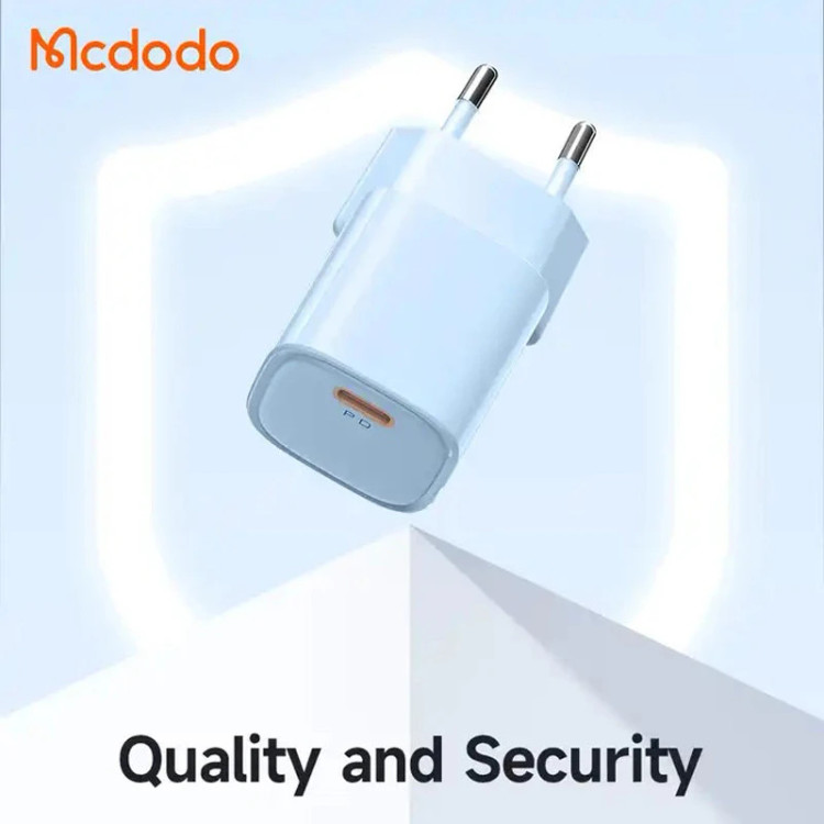 شارژر دیواری 20 وات مک دودو مدل CH-404 دارای یک درگاه Type C می باشد.این پورت تایپ سی از تکنولوژی فست شارژ PD اپل و سامسونگ پشتیبانی میکند.این شارژر از جنس Fireproof PC (ضدحریق و نسوز) با تکنولوژی روز ساخته شده است.امیزان توان خروجی هر پورت در تصاویر امده است.این شارژر دیواری از سری Nano محصولات مک دودو می باشد همراه این شارژر یک عدد کابل تبدیل USB-C به لایتنینگ به طول 1.2 متر و خروجی 3 آمپری ساخته شده از سیلیکون و سری های آلمینیومی قرار دارد. شارژر Mcdodo محافظت 9 لایه ای ارائه می دهد تا با خیال آسوده از آن استفاده کنید.این آداپتور در برابر توان، دما، ولتاژ،جریان و شارژ بیش از اندازه از گوشی شما محافظت می کند. همچنین جلوی اتصال کوتاه را می گیرد و جرقه نمی زند.این شارژر سایز مینی داشته و با حلقه فلزی روکش طلا محل اتصال سوکت کابل مانع از لق زدن کابل می شود.