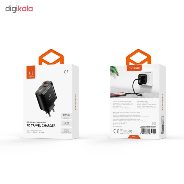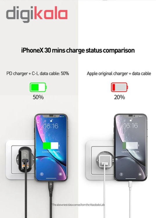 آداپتور دو پورت 20 وات همراه با کابل تایپ سی به لایتنینگ مک دودو LCH-7171 یکی از جدیدترین و پیشرفتهترین تجهیزات