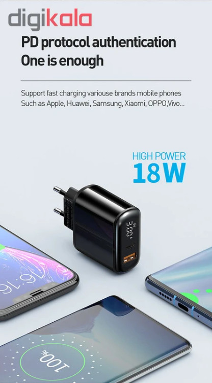 به شما اجازه میدهد دستگاه خود را به راحتی شارژ کنید حتی اگر دستگاه شما دورتر از پریز برق باشد.آداپتور دو پورت 20 وات همراه