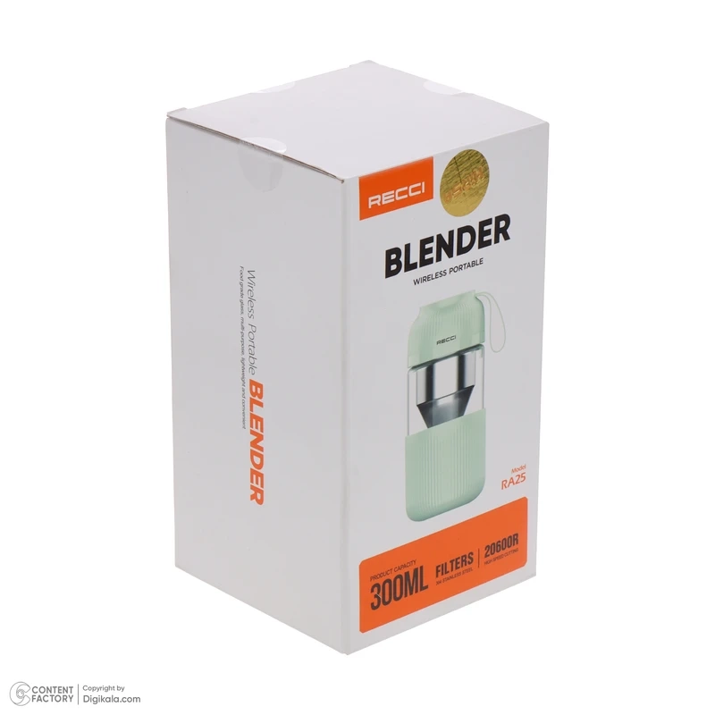 بلندر شخصی و قابل حمل RECCI با ظرفیت 300 میلی لیتر و توان موتور 50 وات انتخابی فوق العاده برای ورزشکاران، مادران، عاشقان سفر و تمام کسانی است که نیاز دارند در هر لحظه از زمان نوشیدنی تازه و طبیعی خود را در دسترس داشته باشند. بدنه تماما ضد آب این محصول باعث میشود تا بتوانید پس از هر بار استفاده به راحتی و با اطمینان خاطر آن را شسته و مجددا استفاده نمایید همچنین طراحی ساده و مدرن در کنار داک شارژ وایرلس موجب میشود تا بتوانید آن را با هر استایلی مورد استفاده قرار دهید.یک صافی فلزی نیز در درون این میکسر وجود دارد که به عنوان صافی عمل میکند و از مخلوط شدن اضافات جلوگیری میکند