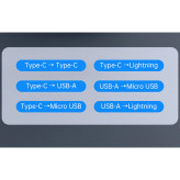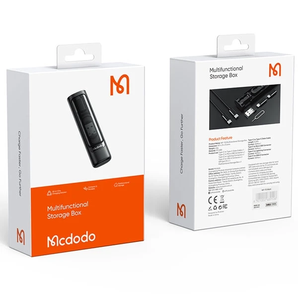 امروزه گوشی های موبایل، تبلت ها و لپ تاپ ها دارای یکی از سه پورت شارژ لایتنینگ ، میکرو یو اس بی و تایپ سی هستند که شما برای شارژ هر کدام از این دستگاه ها که دارای پورت مخصوص به خود می باشد، باید کابل مخصوص آن را نیز با خود داشته باشید. کمپانی Mcdodo با ساخت پک کابل چند منظوره Mcdodo WF-1720 باعث شده تا شما بتوانید با به همراه داشتن این باکس امکان شارژ هر سه نوع درگاه برای شما وجود داشته باشد. این کابل دارای کانکتور های Lightning ، Type-C و Micro USB بوده و به شما این امکان را می دهد تا هر نوع گوشی را شارژ کنید. مشخصات پک کابل چند منظوره Mcdodo WF-1720 باکس چند منظوره WF-1720 دارای 107x31x17.5 میلی متر بوده و وزنی حدود 40 گرم دارد که به راحتی می توانید آن را حمل و نقل کنید. جنس این محصول از پلاستیک محکم ABS و PC بوده که در برابر گرما نیز مقاوم است. داخل باکس چند منظوره WF-1720 یک کابل تایپ سی به تایپ سی با طول 30 سانتی متر، یک تبدیل لایتنینگ (آیفونی)، یک تبدیل USB، یک تبدیل میکرو (Micro USB) و یک سوزن سیم کارت وجود دارد. قابل ذکر است تبدیل ها به کانکتور تایپ سی متصل خواهند شد. شما با استفاده از این تبدیل ها و کابل می توانید تمام دستگاه های موجود را به سیستم و یا آداپتور خود متصل کرده و به انتقال اطلاعات و یا شارژ بپردازید. شما می توانید در 6 حالت از این کابل و تبدیلها استفاده کنید.بعلاوه محفظهای برای قرار دادن سیم کارت و کارت حافظه (TF) در داخل این باکس طراحی شده که باعث میشود شما بتوانید سیم کارت و مموری کارت خود را داخل این باکس گذاشته و با خود حمل کنید. شارژ سریع PD پک کابل چند منظوره Mcdodo WF-1720 دارای قابلیت شارژ سریع PD بوده که می توانید دستگاه های خود را با سرعت بالا شارژ کنید. توان کلی این کابل 60 وات می باشد. قابل ذکر بوده برای استفاده از این توان، نیاز است دستگاه شما این توان را پشتیبانی کند (کابل تایپ سی به تایپ سی). این کابل از فناوری های شارژ سریع SCP، AFC، OPPO، VOOC، VIVO، QC2.0، QC3.0، QC4.0 و PD پشتیبانی می کند و می توانید دستگاههای که از این تکنولوژیها پشتیبانی می کنند، را سریع شارژ کنید.