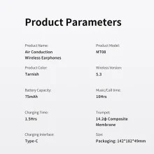 هندزفری MAXCO Open Ear Air Conduction Wireless Earphone MT08 از سیستم هدایت هوایی بهره می برد که می تواند از طریق انتقال امواج صوتی به وسیله هوا صدا را با کیفیت Hi-Fi به گوش شما منتقل کند
